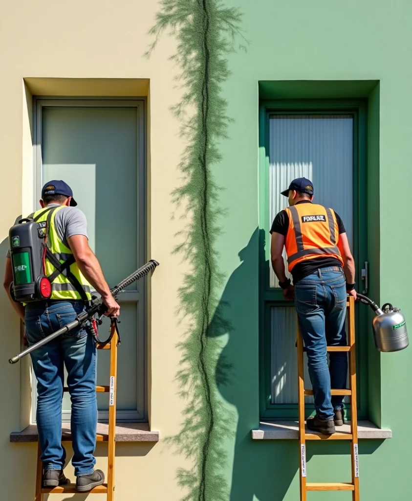 - Préventif : protection de la façade contre les futures infestations, en appliquant un hydrofuge ou un produit anti-mousse longue durée. Un traitement préventif appliqué tous les 2 à 5 ans est recommandé pour maintenir une protection optimale.